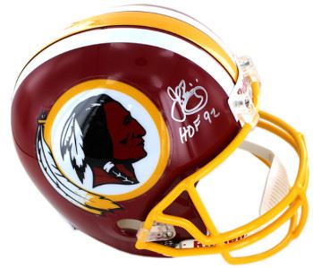 During the strike-shortened 1982 season, Riggins gained 553 yards. He was much more successful during the playoffs, during which he gained 444 yards and helped the Redskins reach Super Bowl XVII. Riggins rushed for a then-Super Bowl record 166 yards on 38 carries and the Redskins then beat the Miami Dolphins 27–17. He was then named Super Bowl MVP. John has hand signed this 1982 Throwback Washington Redskins Riddell Mini Helmet with HOF 92 inscription. This is the exact style (Redskins Tucked Feather) he wore during Super Bowl XVII. MAB Hologram and Certificate of Authenticity from Athlon Sports.