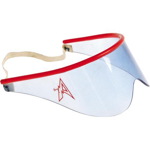 <B>John Ritter's Captain Avenger Visor From "Hero at Large."</B></I> A blue tinted visor with red plastic frame worn by Ritter as part of his Captain Avenger costume in the 1980 comedy. The visor has a stylized letter "A" on one signed and an elastic strap with the initials "J.R." written on it black ink. In Very Fine condition with some scratches and minor soiling.<I>Accompanied by LOA from LA Prop & Wardrobe Company.</B></I><BR><BR><b>Shipping:</b> Clothing, Costumes & Jerseys (<a target="_blank" href="http://www.heritageauctions.com/common/shipping.php">view shipping information</a>)
