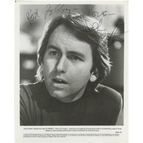 <B>John Ritter Signed Photo.</B></I> A b&w 8" x 10" promo photo from <I>Hero at Large</B></I> inscribed and signed by the late actor in black ink, in Excellent condition.<BR><BR><b>Shipping:</b> Flat Material, Small (<a target="_blank" href="http://www.heritageauctions.com/common/shipping.php">view shipping information</a>) <BR><BR><B>Important not