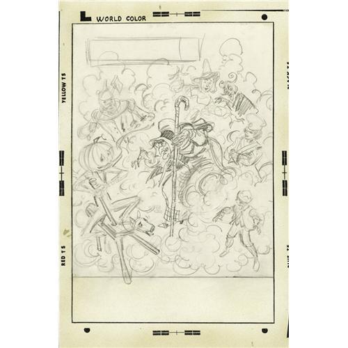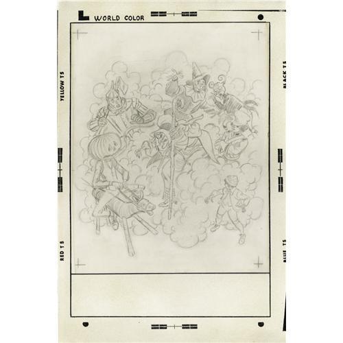 <B>John Romita Sr. - Marvel Treasury of Oz Featuring the Marvelous Land of Oz #1 Cover Preliminary Original Art, Group of 2 (Marvel, 1975).</B></I> L. Frank Baum's fantasy characters from the Land of Oz are brought to life in these two pencil preliminaries for the back cover of the Marvel adaptation of his works. The Scarecrow, the Tin Man, Jack Pumpkinhead, Tip, Mombi, Queen Jinjur, and H. M. Woggle-Bug -- the gang from Oz is all here! Jazzy John Romita, Sr. served as the art director on the project, and these pencil preliminary showcase his talent beautifully. Each drawing has an image area of approximately 10" x 15". These pencil pieces were drawn on vellum and each has been mounted on a piece of support paper; otherwise, the art is in Excellent condition.