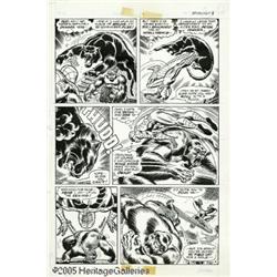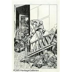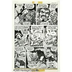<B>John Romita Sr. - Spider-Man Aurora Comic Scenes Instruction Booklet Cover and Story Original Art, Group of 6 (Aurora Plastics Co., 1974).</B></I> Hold on to your spider-signals, True Believers -- this Bronze Age blockbuster includes the cover art and five-page yarn recounting Spider-Man and Kraven the Hunter's epic battle, as immortalized in the famed Aurora Model Kit. John Romita Sr.'s art is at its friendly neighborhood best, as Spidey battles Kraven and his animal horde, a prowling panther and two angry apes; the Hunter has stolen ancient tapestries that contain an imbedded secret in their design, and Spidey soon hands Kraven a humiliating defeat. The art was drawn on Marvel comic book art paper, the image area of each page is 10" x 15", and the art is in Excellent condition. Hints of John's blue penciling can be seen beneath his unparalleled inks. The lot also includes a 10" x 15" photostat of the cover, and model scene, and it includes the logo and other type paste-ups. A Bronze Age John Romita Sr. cover, five page Spider-Man masterwork, with an Aurora model kit tie in? -- face it tiger, it's a triple-collectible! Hang loose, and set your web-shooters on bid -- it's one of Jazzy Johnny's best! 7 items