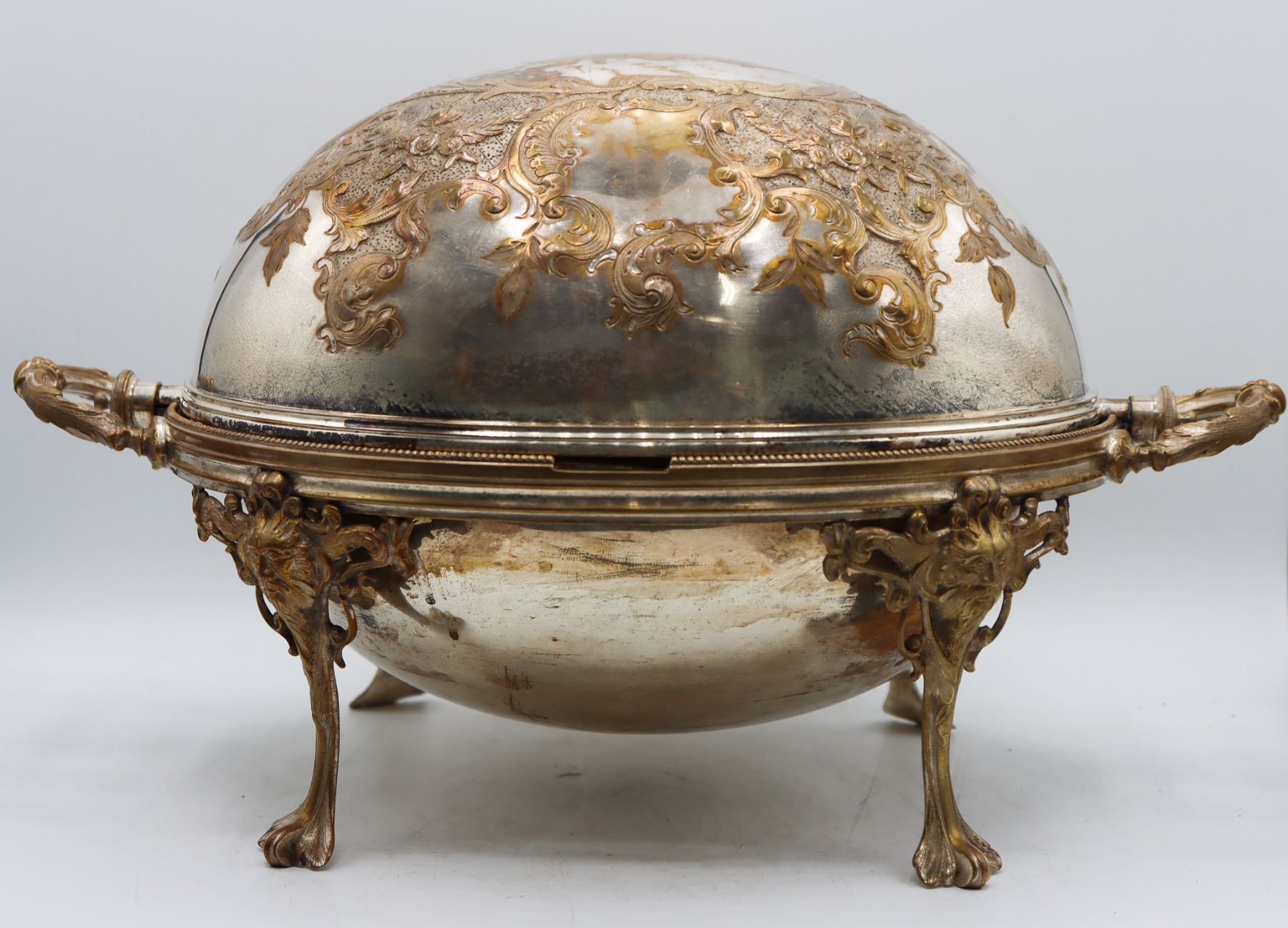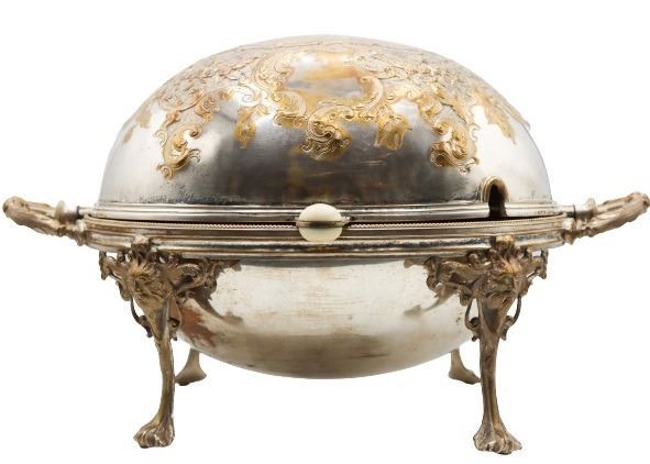 Marked John Round & Son silver plated rolling dome buffet. Number 1880.