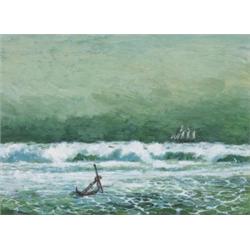 John Ryan (1925-1992) THE LOST ANCHOR and THE LANDING PLACE, DUNQUIN, DINGLE, COUNTY KERRY (A PAIR) signed lower left and lower right respectively acrylic on board 25 by 33cm., 10 by 13in. each Broadcaster, author, editor, theatre set designer, actor, producer, publican and painter – John Ryan was a well-known figure in Dublin for over fifty years. He studied at the National College of Art and from 1946 onwards exhibited regularly with the RHA, the Oireachtas and the Living Art exhibitions. He was editor of the literary and arts journals, Envoy (1949-51) and The Dublin Magazine (1969-74), as well as a long-time contributor to Sunday Miscellany on Radio Éireann. In 1975 he published a book of his reminiscences of literary Dublin entitled Remembering How We Stood, featuring stories of his friends including Brendan Behan, Patrick Kavanagh and the many Dublin characters who patronised his famous pub, "The Bailey" in Duke Street.