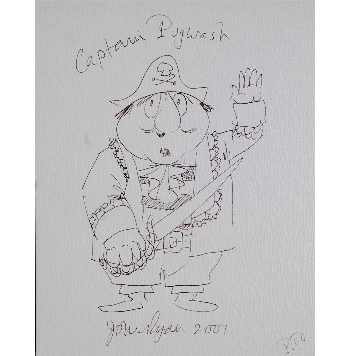 Original 8"x10 Ink sketch done by Ryan of his popular character Captain Pugwash,signed" John Ryan 2001". John Gerald Christopher Ryan (4 March 1921 – 22 July 2009) was a British animator and cartoonist, best known for his character Captain Pugwash.