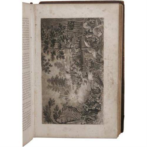 <B>John S. C. Abbott:<I> The History of the Civil War in America;</B></I> Comprising a Full and Impartial Account of the Origin and Progress of the Rebellion, of the Various Naval and Military Engagements, of the Heroic Deeds Performed by Armies and Individuals, and of Touching Scenes in the Field, the Camp, the Hospital, and the Cabin.</B></I> (New York: Henry Bill, 1863 and 1866), in two volumes, first edition, volume one 507 pages, volume two 629 pages, illustrated with numerous engravings, decorative brown leather with gilt titles, marbled endpapers, 4to (6.5 x 10), bumped and worn corners, wear to the boards, small section missing from the head and tail of spine volume one, entire spine missing from volume two, front endpapers loose in volume one, else good condition. <BR><BR><b>Shipping:</b> Books & Catalogs (<a target="_blank" href="http://www.heritageauctions.com/common/shipping.php">view shipping information</a>)