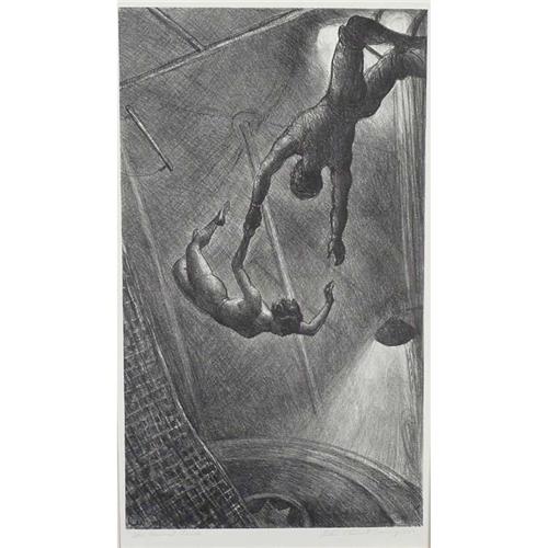 8127 John Steuart Curry (1897-1946) Lithograph "The Missed Leap" 1934 Pencil signed lower right Image 17" x 9 1/2" Paper 20 1/2" x 13 1/2"