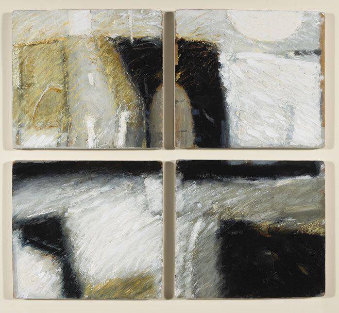 oil on panel; (in four parts)signed in the lower right panel lower left; signed and titled on reverse; with Leinster Gallery label on reverse