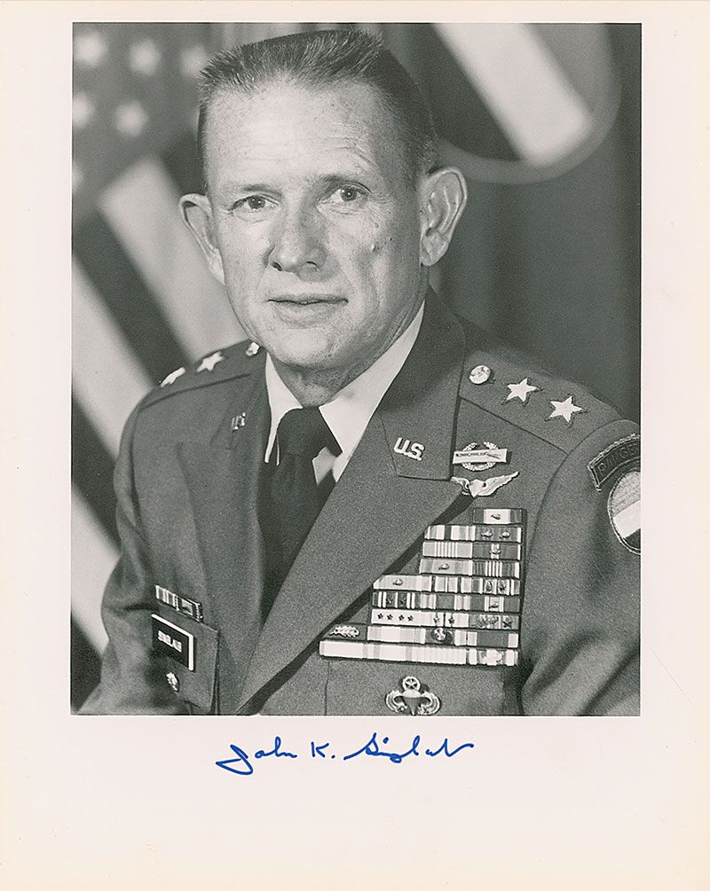 One of the key members that helped found the CIA. During WWII he served with the O.S.S. (the precursor of the CIA) and jumped into Normandy to help the French Resistance for the D-Day invasion. Semi-glossy 8 x 10 cardstock photo of the general in uniform, signed in the lower border in blue felt tip. In fine condition.