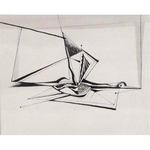 7606 John Skolle (b. 1903) Pen/Ink "Bird" Signed lower right 5 1/4" x 6 1/2"