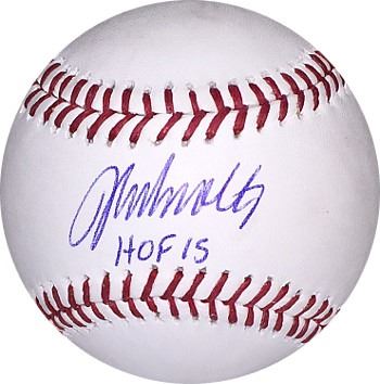 John Smoltz played from 1988 to 2009, all but the last year with the Atlanta Braves. An eight-time All-Star, Smoltz with Greg Maddux and Tom Glavine was one of a celebrated trio of starting pitchers who propelled Atlanta to perennial pennant contention in the 1990s, highlighted by a championship in the 1995 World Series. He won the National League (NL) Cy Young Award in 1996 after posting a record of 24–8, equaling the most victories by an NL pitcher since 1972. Though predominantly known as a starter, Smoltz was converted to a reliever in 2001 following his recovery from Tommy John surgery, and spent four years as the team's closer before returning to a starting role. In 2002, he set the NL record with 55 saves, and became only the second pitcher in history (joining Dennis Eckersley) to record both a 20-win season and a 50-save season. He is the only pitcher in major league history to record both 200 wins and 150 saves. He was elected to the Baseball Hall of Fame in 2015, his first year of eligibility. John Smoltz has hand signed this official MLB baseball with HOF 15 inscription. JSA Hologram and Certificate of Authenticity.