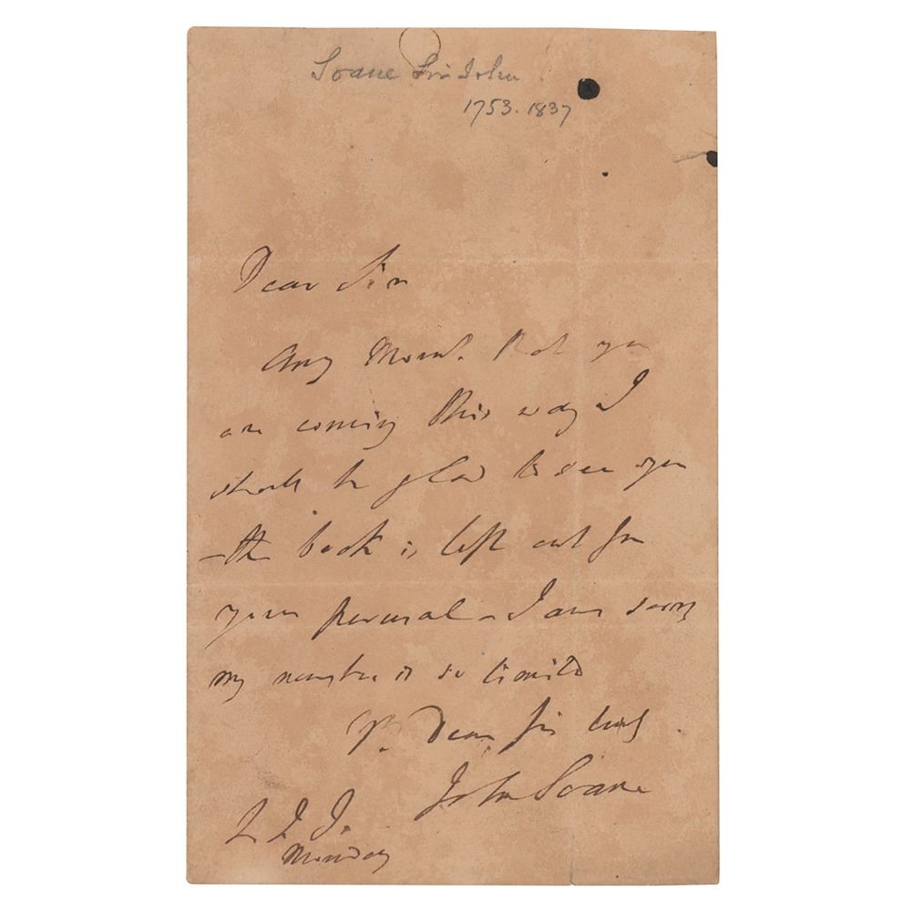 ALS, one page, 4.5 x 7.25, no date. Handwritten letter, in part: "I shall be glad to see you—the book is left out for your perusal." In very good to fine condition, with overall toning and a rusty circular paperclip impression to the top.