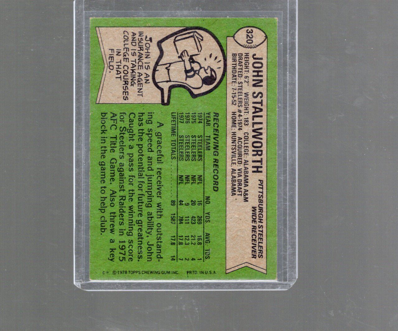John Stallworth ROOKIE CARD 1978 Topps #320