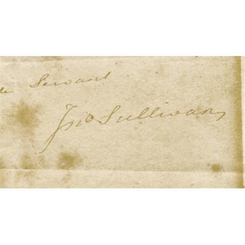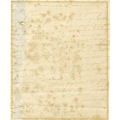 <B>John Sullivan Important Autograph Letter Signed</B></I> “<I>Jno Sullivan,</B></I>” one page, 7.5” x 9”. Providence, October 27, 1778. To Major General Horatio Gates. In part, “<I>I had the Honor of your favor of yesterday Inclosing Copy of General Washington's Letter to you & a Letter from his Excy to me. I shall with pleasure give you the Earliest Intelligence of every important matter which may turn up in this Quarter. At present there is no appearance of the Enemy…nor do they seem to expect the British Fleet this way they seem to agree that one…of the Fleet is bound to the West Indies the other to Halifax…for the Army the Magazines are all exhausted in this Department…</B></I>” On October 24, 1778, from his headquarters at Fredericksburg, New York, General Washington wrote Major General Sullivan, in part, “I have directed General Gates to open a correspondence with General Heath and yourself, that you may give him instant advice of the arrival of the enemy's fleet which lately sailed from the Hook; should they be designed to operate Eastward, in order that he might immediately march forward with the troops under his command. You will at the same time that you do this, dispatch the intelligence to me, as I propose, the moment, I should hear of such an event, to proceed myself with all dispatch to the Eastward…” Sullivan replied to Washington on October 31st, telling him of the capture of the British schooner <I>Pigot</B></I> in the eastern channel of Narragansett Bay on October 24th by Maj. Silas Talbot, of the First Rhode Island regiment. General Washington had written to General Gates the same day he wrote Sullivan. In part, “A fleet of about one hundred and sixty sail, supposed to contain 7, or 8,000 men having left the Hook the 19th. and early the 20th…You will be pleased to open a correspondence with Generals Heath and Sullivan, in order to obtain from them instant information of the Enemy's arrival off the coast, should their destination be, for the Eastward; and on certain advice of this event, you will proceed immediately, with the two divisions, in the most expeditious manner towards the quarter which seems to be threatened…You will at the same time communicate the intelligence you receive to me, without a moments delay…” With the onset of cold weather, on November, 3, 1778, British General Sir Henry Clinton dispatched transports carrying 5,000 men from New York City southward. The letter has evidence of prior framing; with mat burn at margins, foxing, and some fading. There are mounting remnants at the edge on verso with slight show-through. Good Revolutionary War military content letters are eagerly collected and this one, linking the names of Generals Washington, Gates, and Sullivan is historically important and extremely desirable.<BR><BR><b>Shipping:</b> Flat Material, Small (<a target="_blank" href="http://www.heritageauctions.com/common/shipping.php">view shipping information</a>)