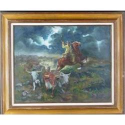 John Jones. Oil on Canvas. Stampede. 24" x 30". signed lower left. Est $600 - $800.