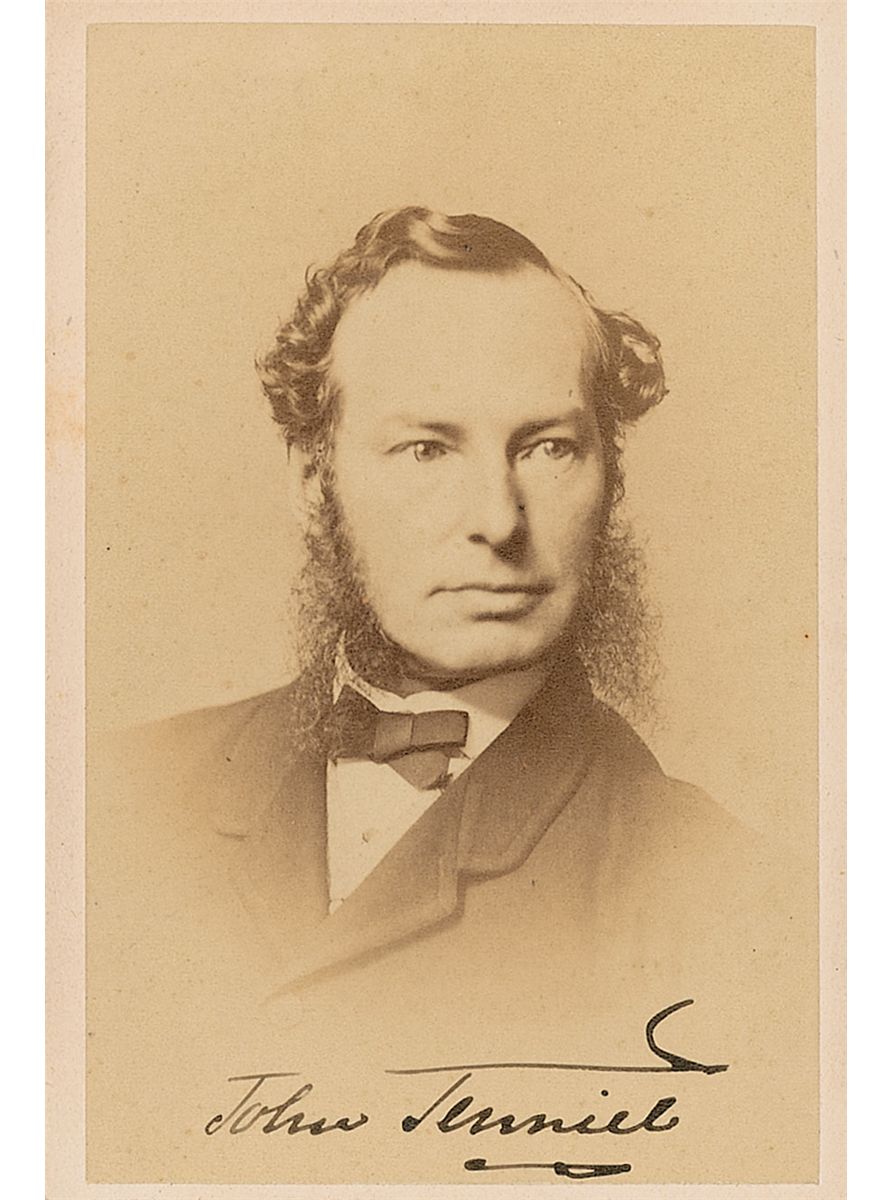 British illustrator (1820–1914) best known for his collaborations with Lewis Carroll on the Alice in Wonderland books. Original 2.5 x 3.75 carte-de-visite photo by Elliott and Fry, signed below the image in black ink. In fine condition, with lightly trimmed lower edge and tape remnants along edge of reverse.