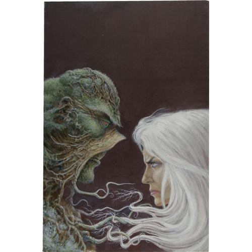 <B>John Totleben - Swamp Thing (Third Series) #18 Painted Cover Original Art (DC, 2001).</B></I> John Totleben returned to the characters he helped to immortalize for the cover of this, the third incarnation of the title. Tefe Holland and her father, the Swamp Thing, stare daggers at each other in this beautiful, yet powerful, cover image. Long regarded as one of the finest artists ever to bring the Swamp Thing to life, Totleben has the ability to take even a quiet scene like this and make it throb with tension. The art, which is in Excellent condition has an overall size of 16" x 24". Signed at the lower left.<BR><BR><b>Shipping:</b> Flat Material, Large (<a target="_blank" href="http://www.heritageauctions.com/common/shipping.php">view shipping information</a>)