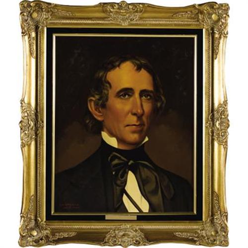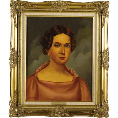 <B>John Tyler and Letitia Tyler Oil Portraits</B></I> by Lawrence Williams. Each oil portrait is 16" x 20" and framed in gilt to an overall dimension of 23" x 27" with an engraved brass nameplate at the bottom of the frame.<BR><BR><b>Shipping:</b> Other (oversized items, group lo (<a target="_blank" href="http://www.heritageauctions.com/common/shipping.php">view shipping information</a>)