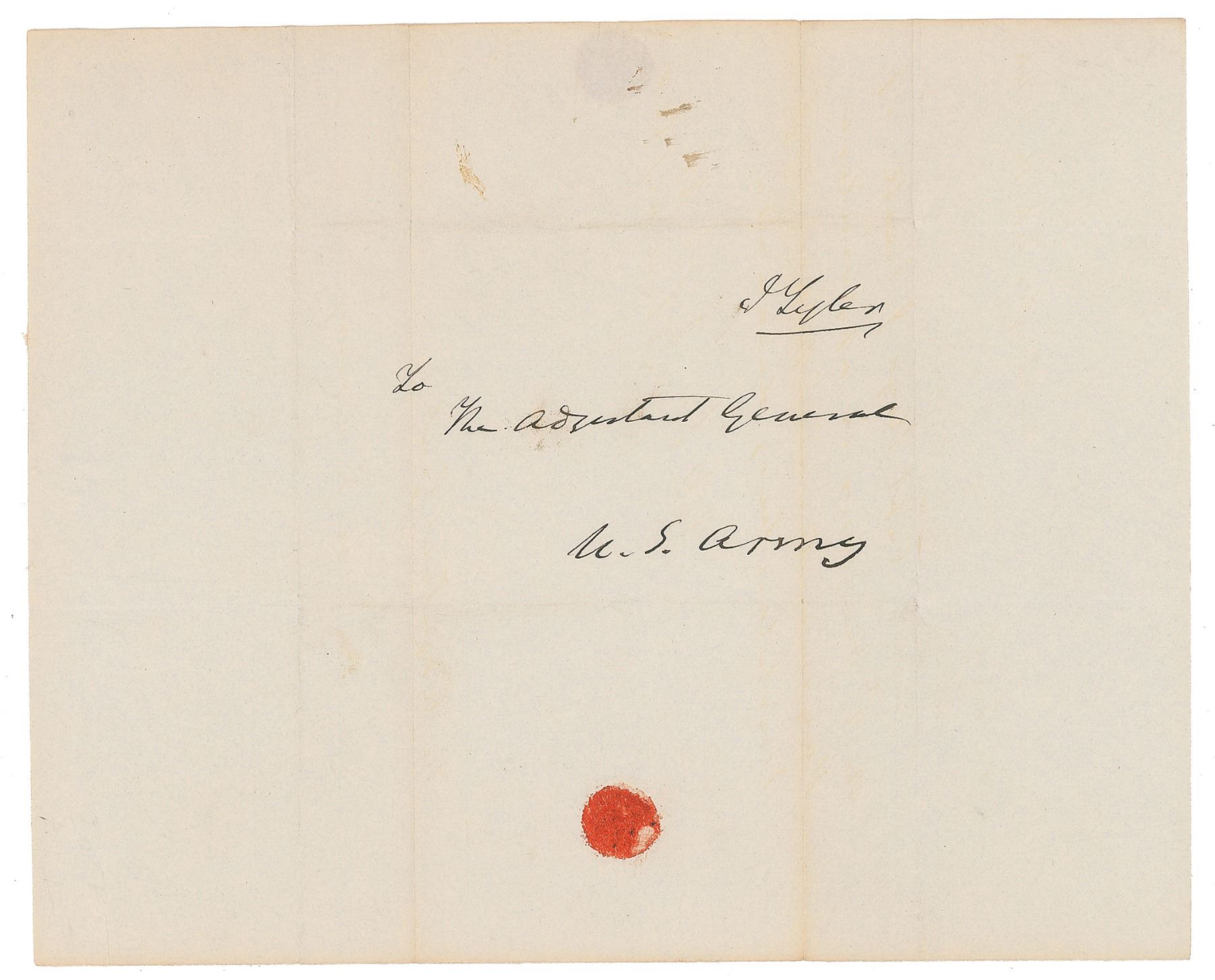 Desirable full free frank, measuring 9.75 x 8 unfolded with a center panel of 5.25 x 3.25, addressed by Tyler to "The Adjutant General, U. S. Army," and franked in the upper right, "J. Tyler." In fine condition.