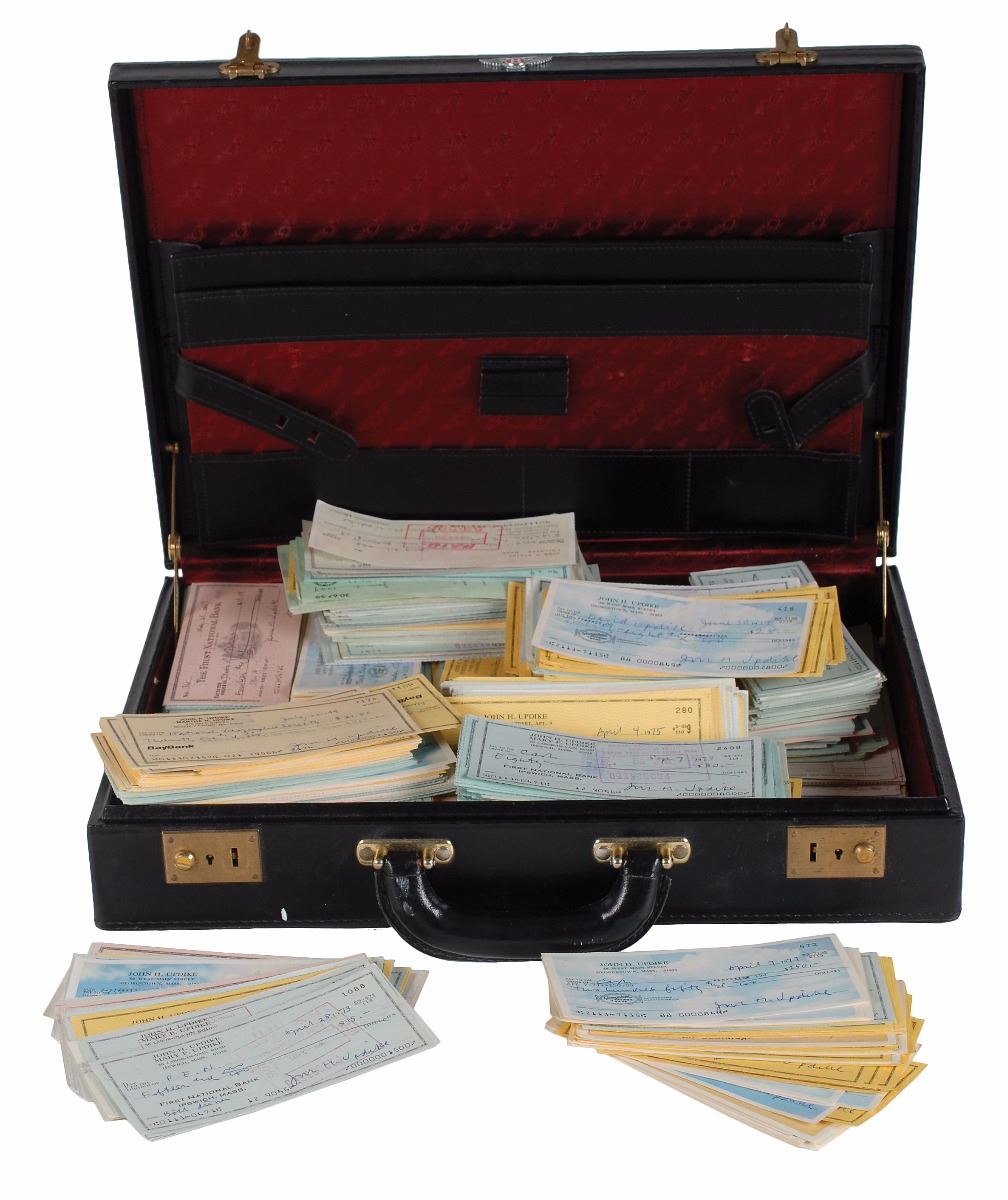 Enormous collection of John Updike’s personally-owned material gathered from outside his home in Beverly Farms, Massachusetts, including photographs, personal checks, letters, cards and invitations, notes, drafts, and other ephemera. This large collection has been the subject of stories in both the New York Times and The Atlantic in addition to other notable international publications. Among the highlights of the collection are:
