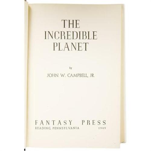 <B>John W. Campbell, Jr. First Editions.</B></I> Includes the following:<BR><B><I>The Incredible Planet.</B></I></B></I> (Reading, PA: Fantasy Press, 1949), first edition, 344 pages, blue boards, 12mo, dust jacket. Condition (book/ dj): fine/ fine.<BR><B><I>The Moon is Hell!.</B></I></B></I> (Reading, PA: Fantasy Press, 1951), first edition, 256 pages, black boards, 12mo, dust jacket clipped. Condition (book/ dj): fine/ very good.<BR><BR><b>Shipping:</b> Books & Catalogs (<a target="_blank" href="http://www.heritageauctions.com/common/shipping.php">view shipping information</a>)