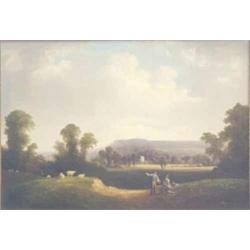 John Wallace Tucker (1808-1869)Oil on millboard,Exwick Church and Haldon Beacon from Exwick Fields,Inscribed verso and dated 1838,10 x 14 ins. £1,000-1,500