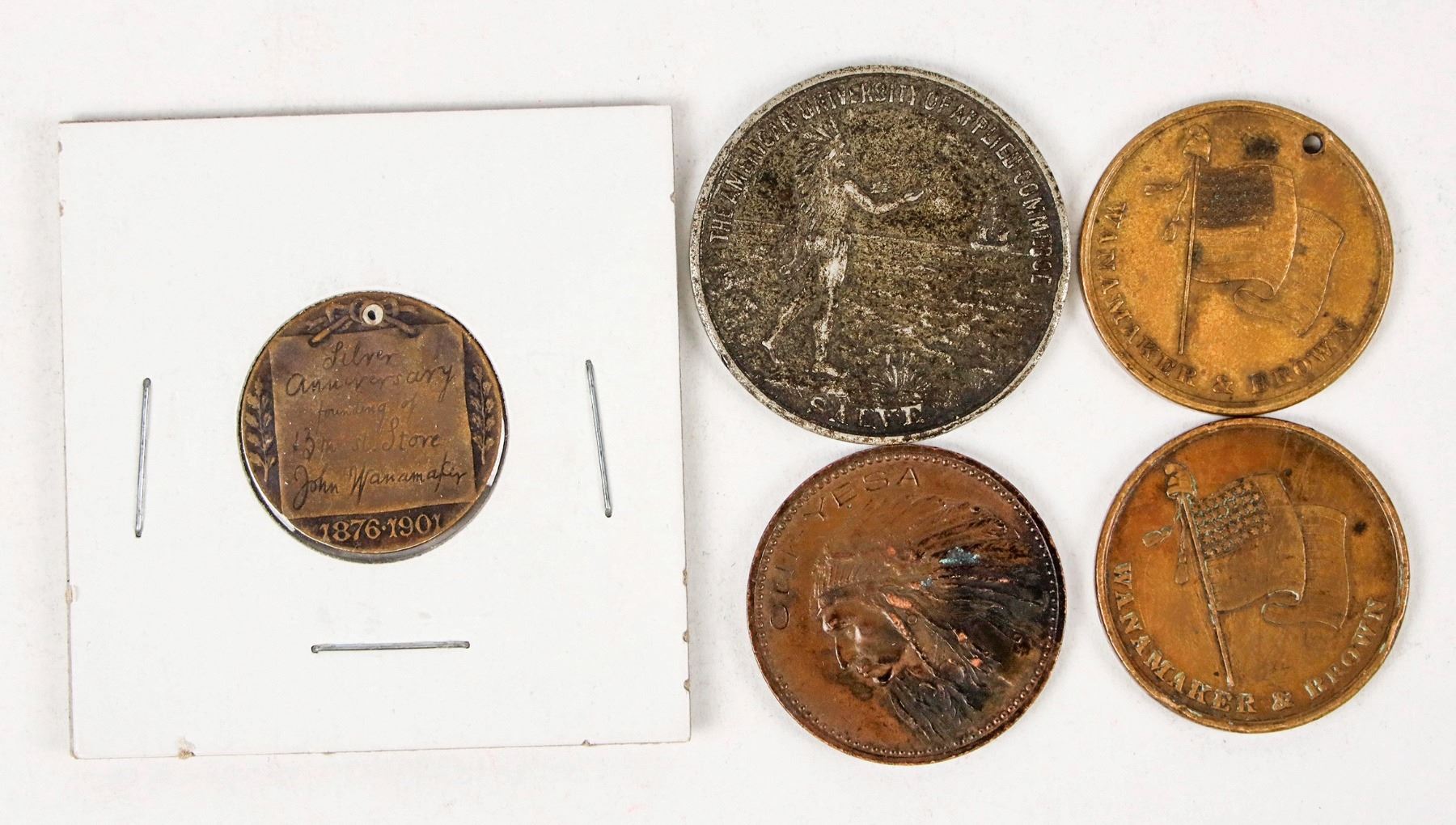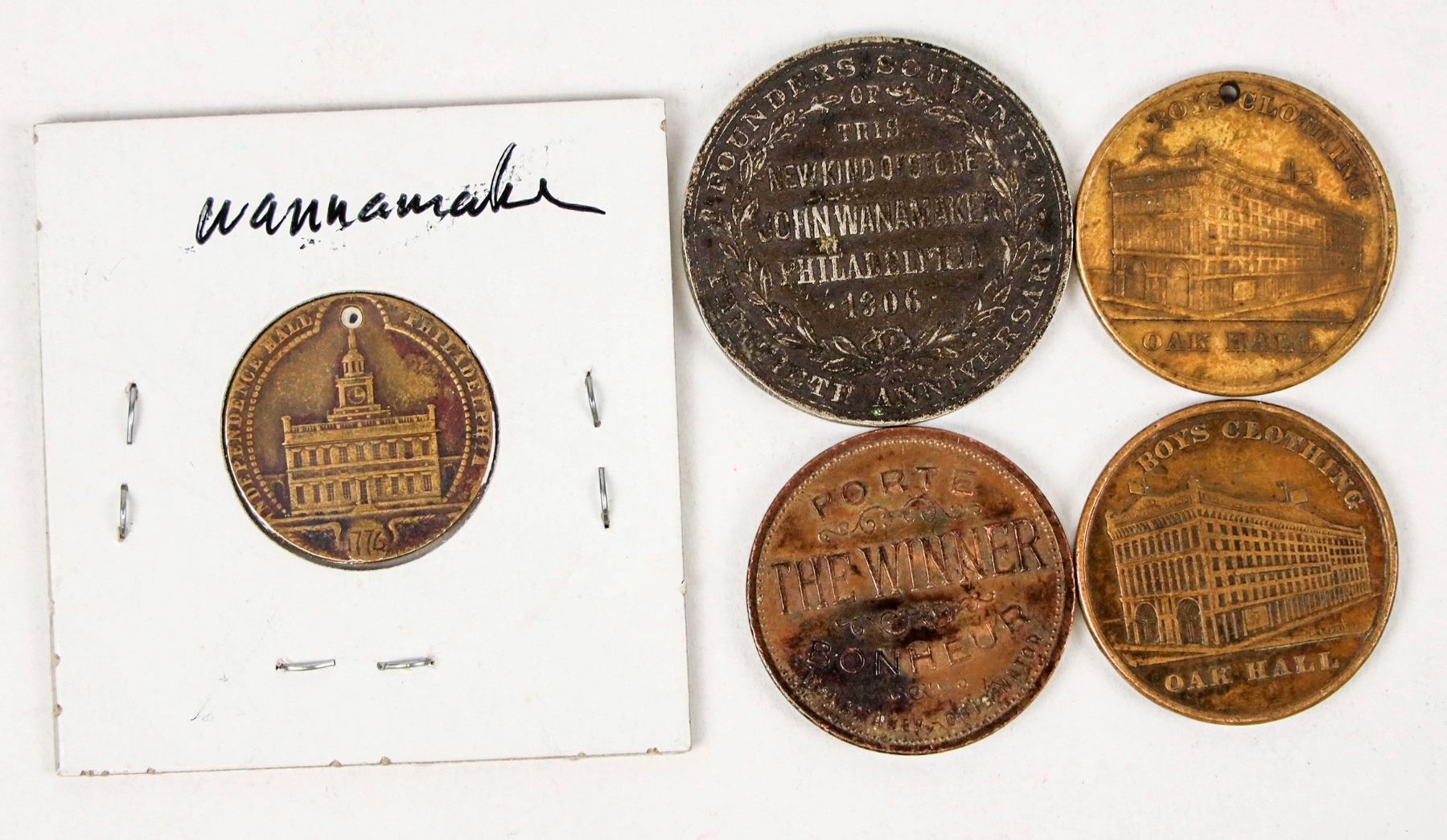 Five different tokens from Wannamaker, Wannamaker & Brown, John Wannamaker. Wanamaker's was an American department store chain founded in 1861 by John Wanamaker. It was one of the first department stores in the United States, and peaked at 16 locations along the Delaware Valley in the 20th century. Wanamaker's was influential in the development of the retail industry including as the first store to use price tags.