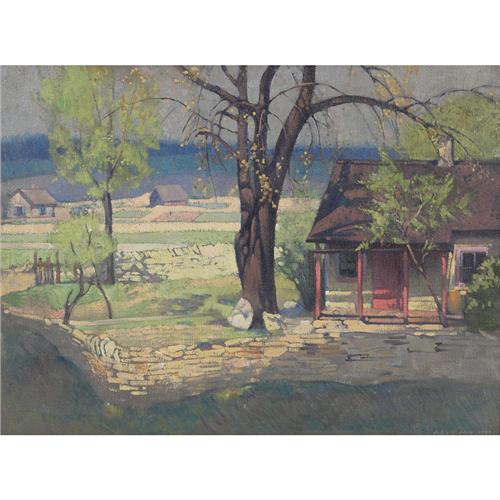 John Warner Norton (American,1876-1934), Landscape with a House, 1920;oil/canvas,18.25in. x 24.5in., signed and dated.Norton studied at the Art Institute of Chicago and was a member of the Chicago Society of Artists.
