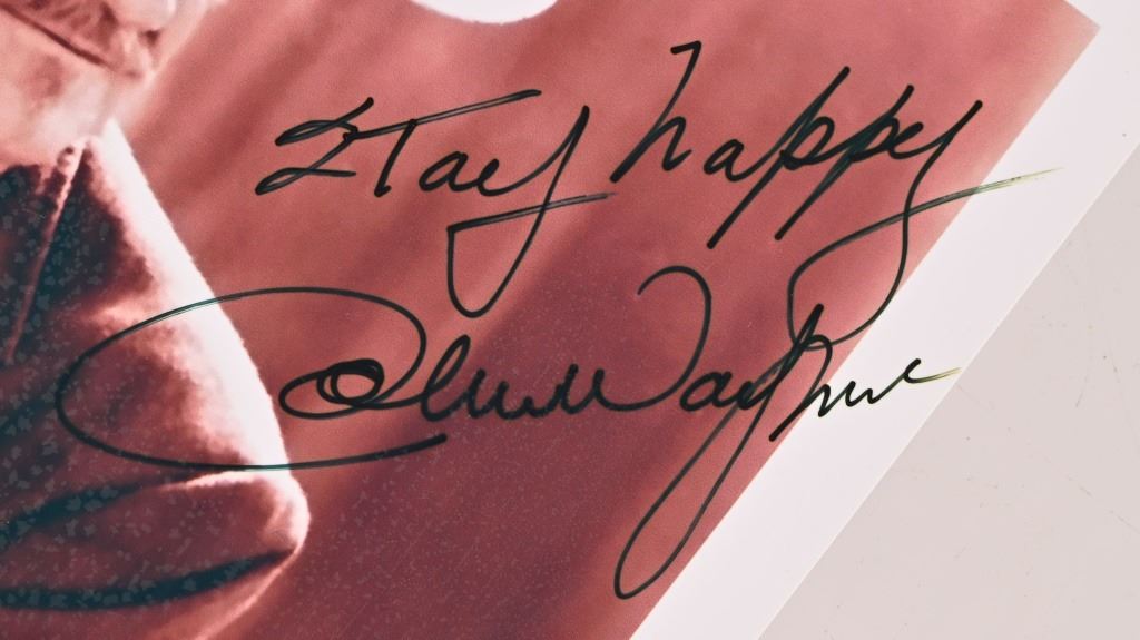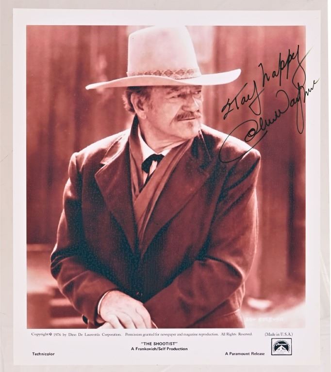 Signed by John Wayne "Stay Happy" 8.5" x 10" photo from his last film, "The Shootist".