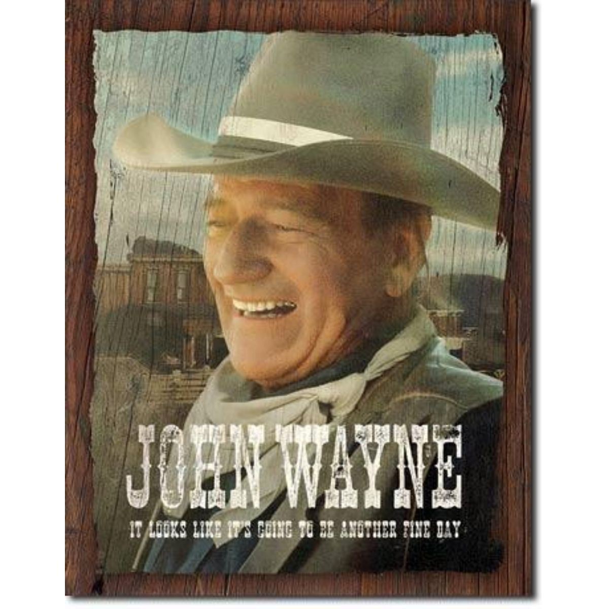 John Wayne - Fine Day - vintage-style decorative metal pub bar sign. 12.5" W x 16" H with pre-drilled holes for mounting. Â