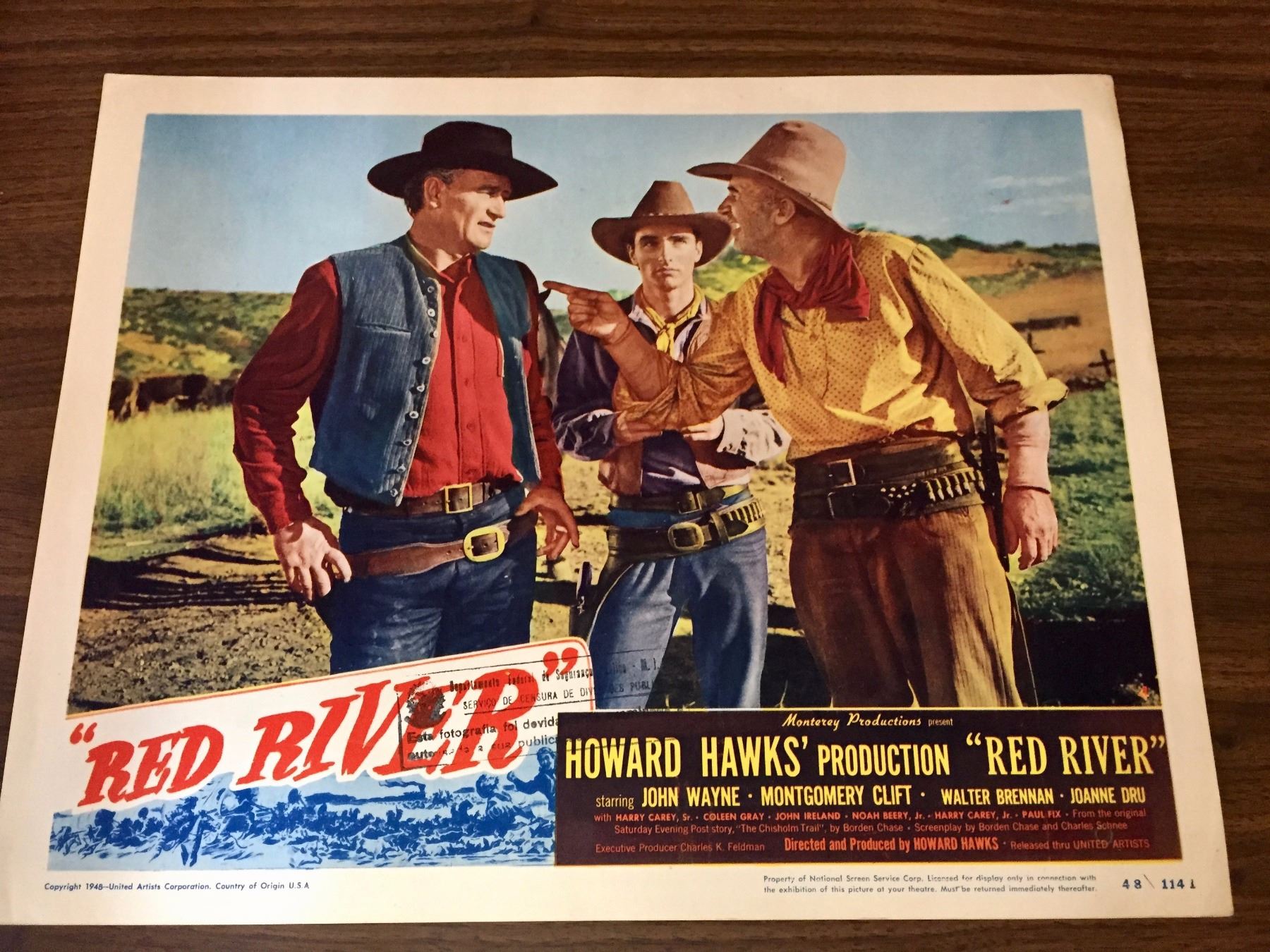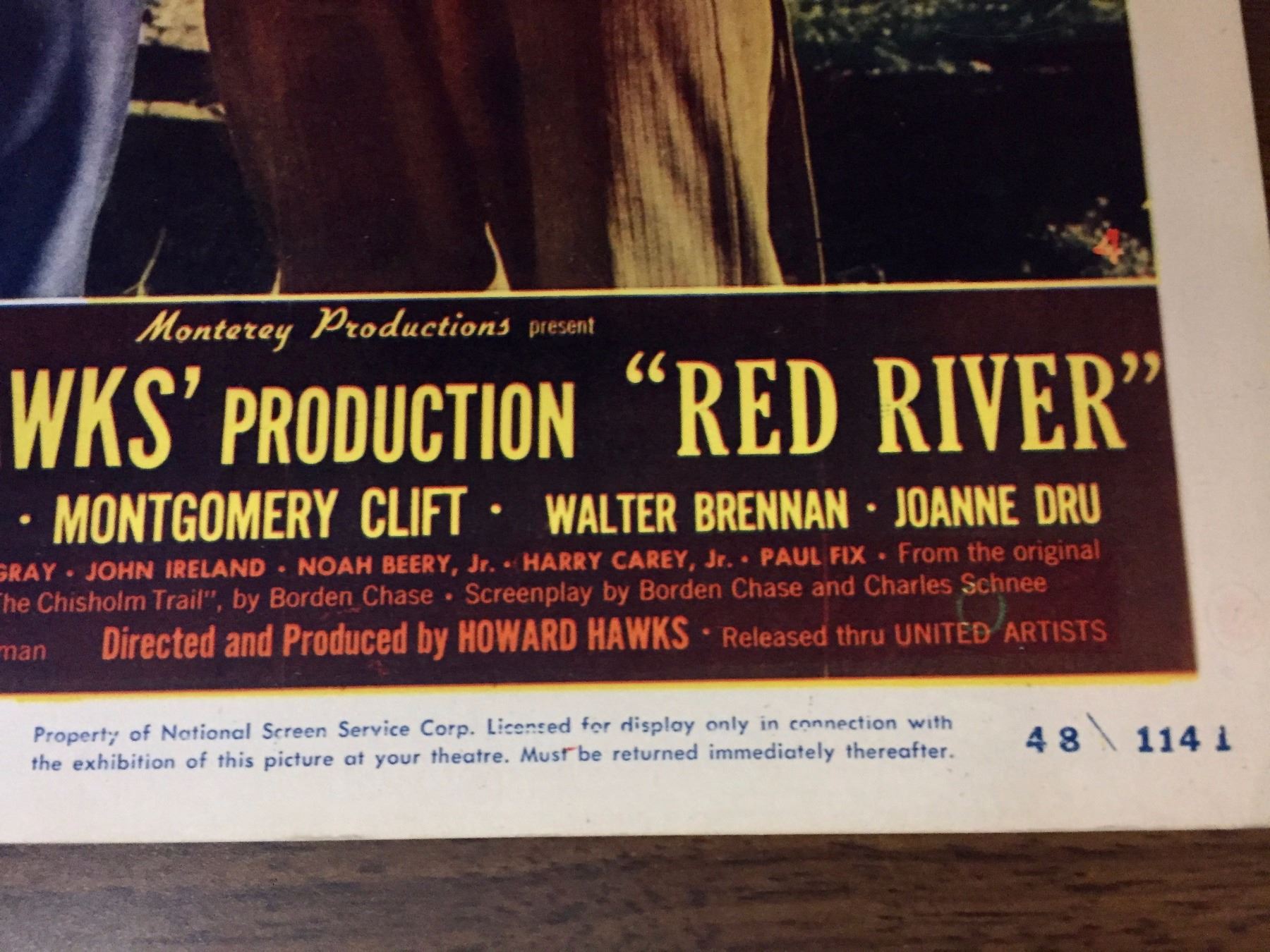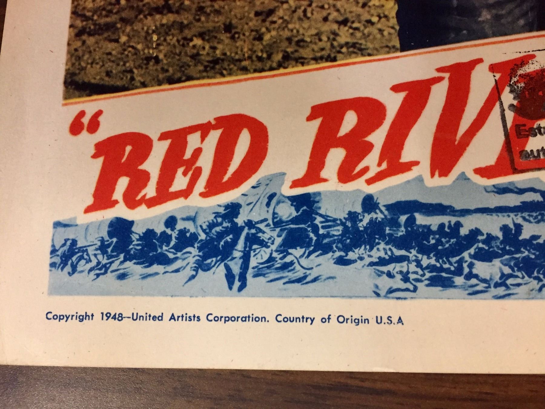 Description: An original, John Wayne, Red River Lobby Card. Maker: United Artists Corporation. Approx. Age: 1948. Size: 14”w x 11” tall. Condition: Appears to be good for its age, normal wear expected. Please look closely at the pictures - they are an important part of our description. Shipping: There will be a $7 handling / packaging fee for shipping this lot. The actual cost of postage will be added on top of that.
