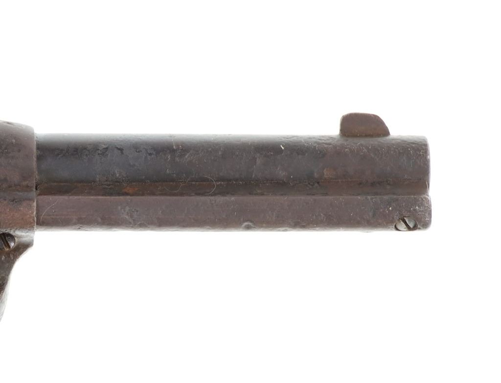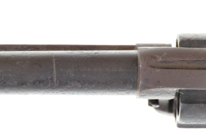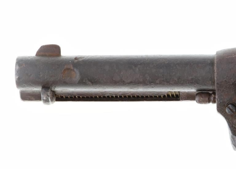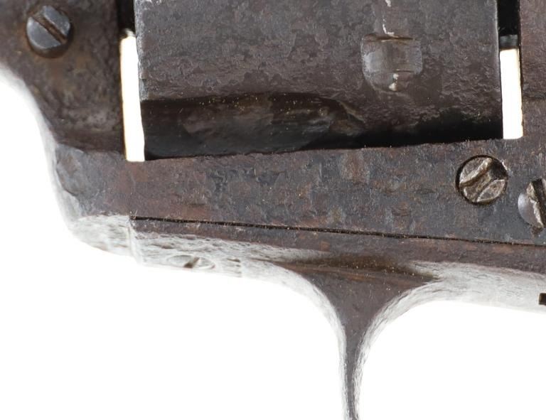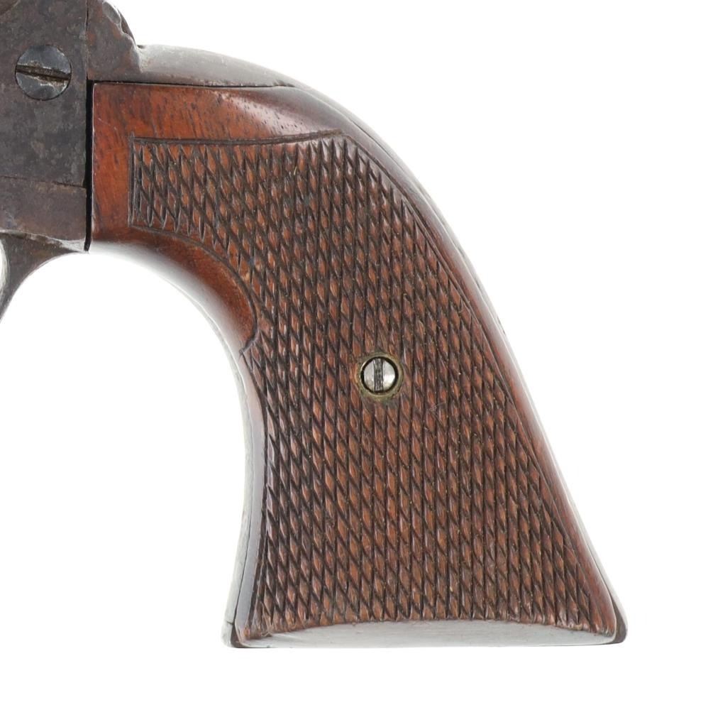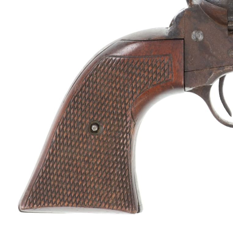 This is an original Colt Single Action Army Model 1873 revolver serial number 283097 manufactured in 1906 attributed as being used by John Wayne for the filming of "The Cowboys" in 1972. The revolver comes with a signed letter from Micky Osmond stating, "This Relic was found at Williams Creek Colorado where John Wayne filmed the movie "The Cowboys". Where Bruce Durn ha his foot caught in the stirrup at the end of the movie." The piece is a single action army Colt revolver chambered in 45 COLT with a two line Colt address atop the 4.75" round barrel. The frame, trigger guard and butt all have the matching "283097" serial number signifying a manufacture of 1906. The gun is in relic, dug condition, but surprisingly still appears to function. The signed letter is included. A unique piece with provenance. Curio and Relic or Modern firearm requires an FFL or Curio transfer.