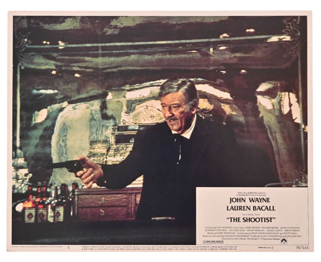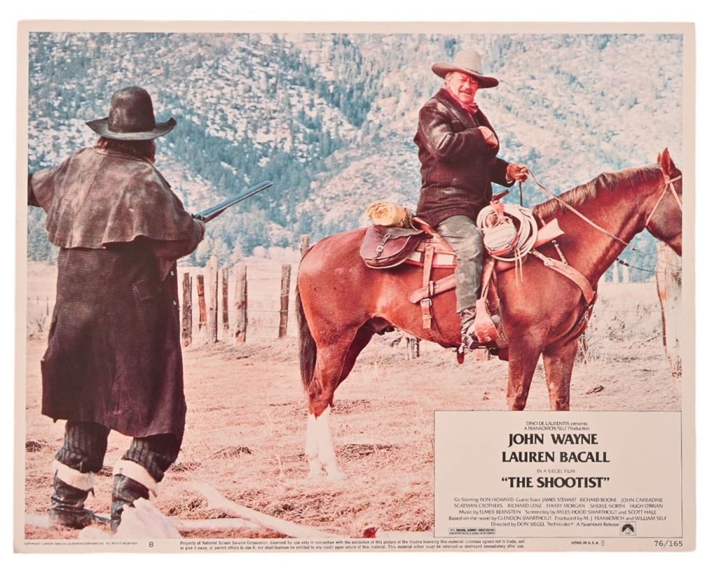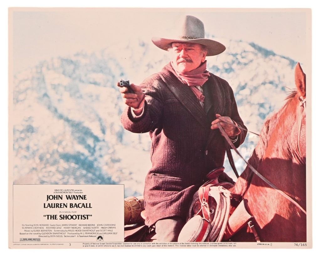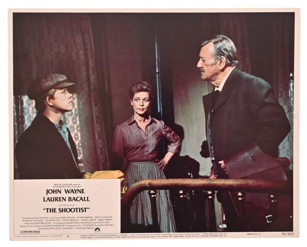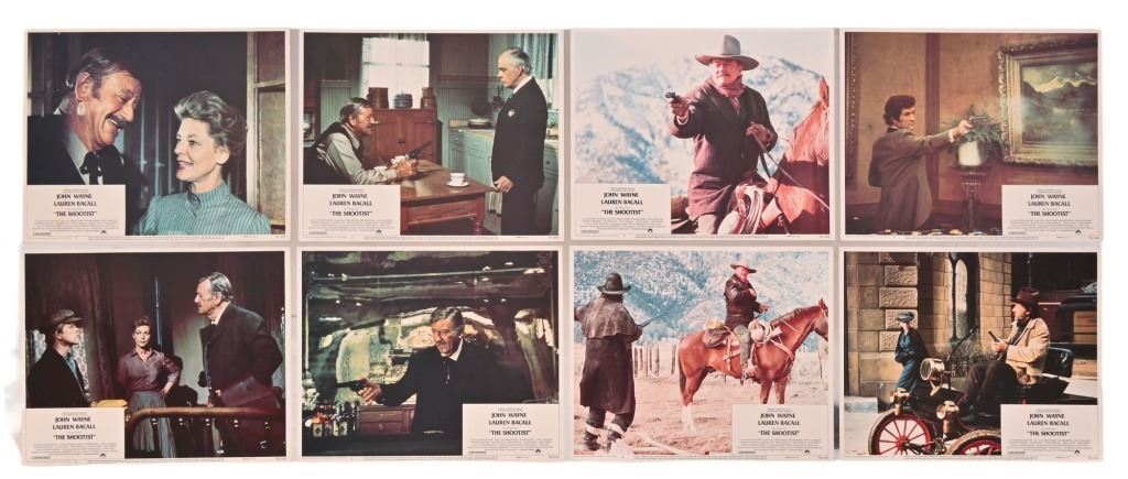 Entire pack of NOS promotional lobby cards for John Wayne's final film "The Shootist". Eight 11x14 lobby cards of the film starring John Wayne, Lauen Bacall, and Ron Howard, numbered 1-8 limited edition 76/165.