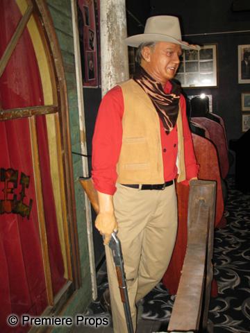 From the Movieland Wax Museum, this is a John Wayne Wax Figure. (approx. 70” x 20” Head is currently not attached, but can be put back together.) Item is oversized and will require additional shipping charges. Please email for shipping rates prior to bidding.