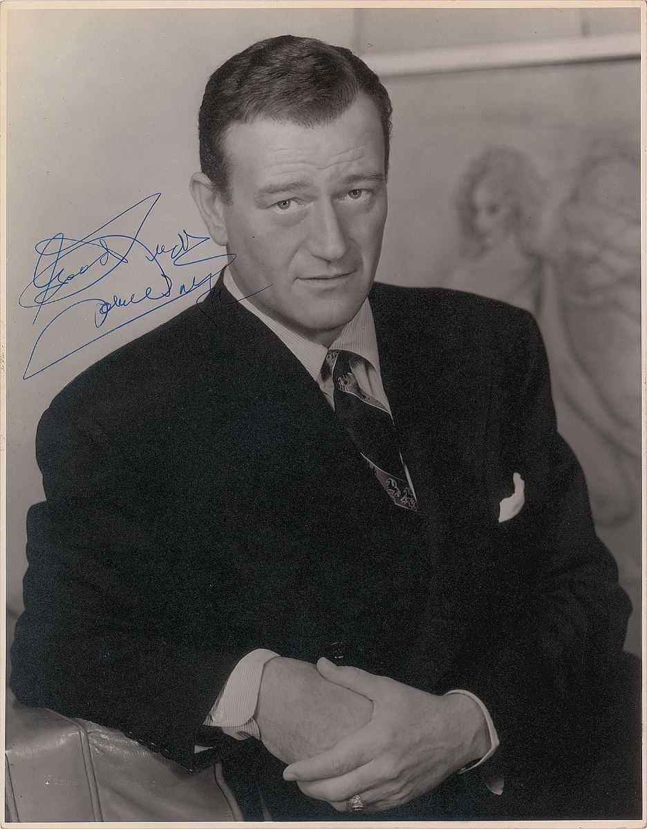 Incredible vintage matte-finish 10.5 x 13.5 portrait of Wayne by Ernest A. Bachrach, signed in blue ink, “Good luck, John Wayne.” Blindstamped in the lower left by the Bachrach photography studio. In very fine condition. An ideal, uninscribed portrait of the Duke by one of vintage Hollywood’s greatest photographers.