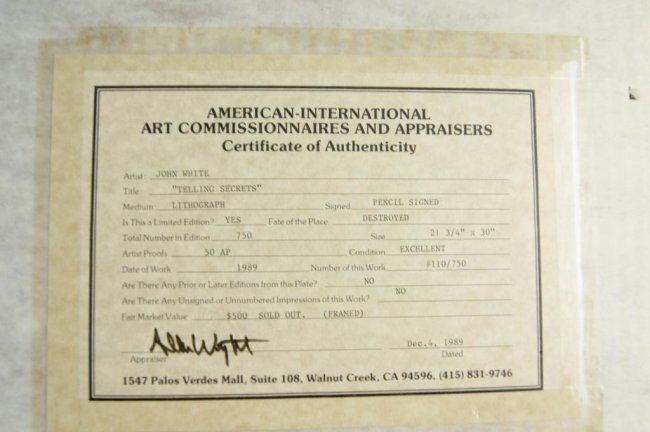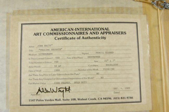 Telling Secrets" 1989, pencil signed and numbered 110 of 750, with no more printed editions. Includes COA's - they measure 21.75" x 30" and two @ 22" x 7