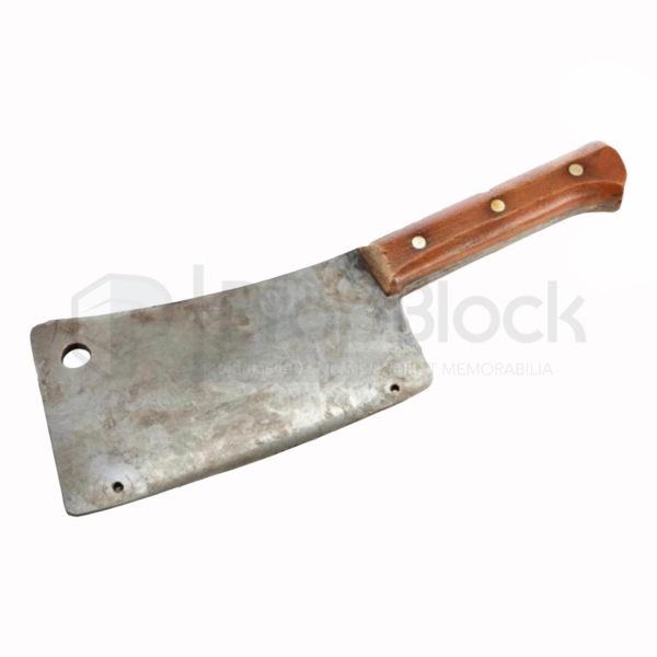 Stunt meat cleaver featured in the third film of the popular action franchise John Wick 3: Parabellum. Super-assassin John Wick is on the run after killing a member of the international assassin’s guild, and with a $14 million price tag on his head – he is the target of hit men and women everywhere. This is one of the many cleavers used by the title character John Wick, actor Keanu Reeves in the film. Made of a dense rubber, this piece features the likeness of a real meat cleaver, with a faux metal blade and wooden handle. This piece was originally sold in the studio sanctioned auctions and remains in excellent, production used condition.