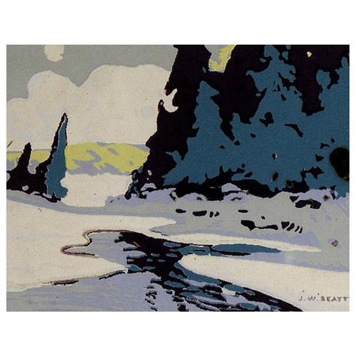 [Canadian RCA 1869-1941] UNTITLED (SPRING THAW) Colour serigraph on paper 3.75 x 4.75 in. Signed in the screen.