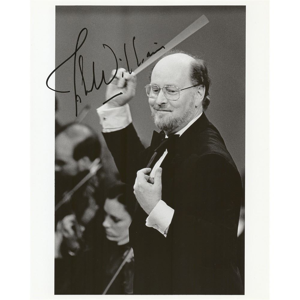 Glossy 8 x 10 photo of Williams energetically waving his conductor's baton, prominently signed in black felt tip. In fine condition.