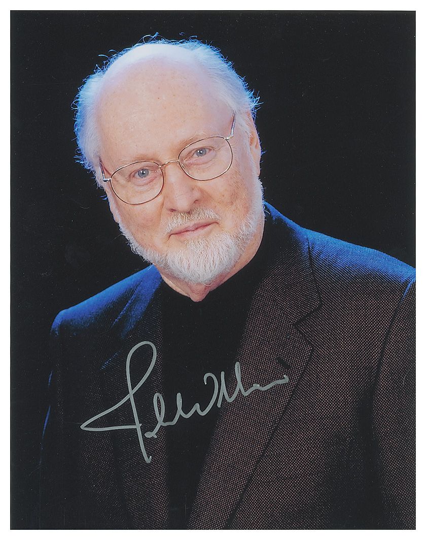 Color satin-finish 11 x 14 head-and-shoulders photo, signed boldly in silver ink, “John Williams.” In fine condition, with a few scattered light surface marks.