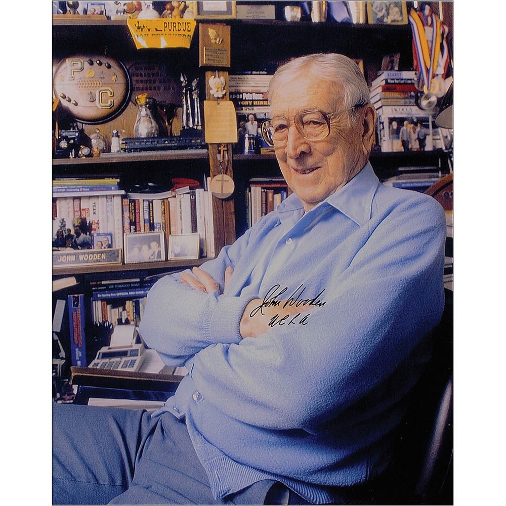 Color glossy 16 x 20 photo of an elderly Wooden in his office, signed in black felt tip. In fine condition.