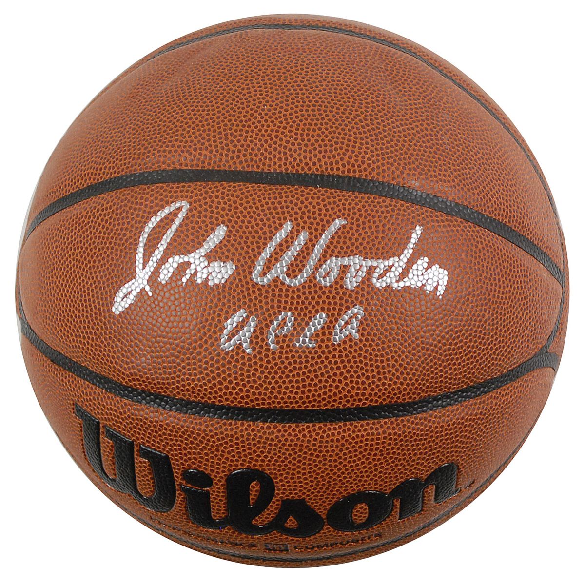 Official Wilson basketball signed in silver ink on a side panel, “John Wooden, UCLA.” In fine condition.