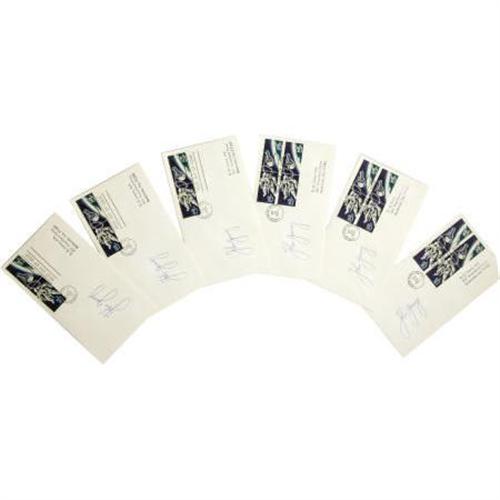 <B>John Young - Lot of Six Signed First Day Covers</B></I> postmarked September 29, 1967, at the Kennedy Space Center, Florida celebrating the release of Scott #1331-1332. This <I>se tenant</B></I> pair of stamps picture an astronaut walking in space tethered to a Gemini space capsule and commemorate the first U.S. walk in space by Ed White of Gemini 4. John Young is one of the most-traveled astronauts in U.S. history. In his long career at NASA, he flew on six missions (the first to do so) including Gemini 3, Gemini 10, Apollo 10, Apollo 16 (where he walked on the moon), STS-1, and STS-9. None of these covers are cacheted and all have the stamped address of Dr. Coons beneath the stamps. Three feature pairs of stamps and three have blocks of four. Young neatly signed all on the left side in blue ink. Very fine condition. <I>From the estate of Dr. D. Owen Coons, Chief of NASA's Manned Spacecraft Center Medical Office.</B></I><BR><BR><b>Shipping:</b> Flat Material, Small (<a target="_blank" href="http://www.heritageauctions.com/common/shipping.php">view shipping information</a>)