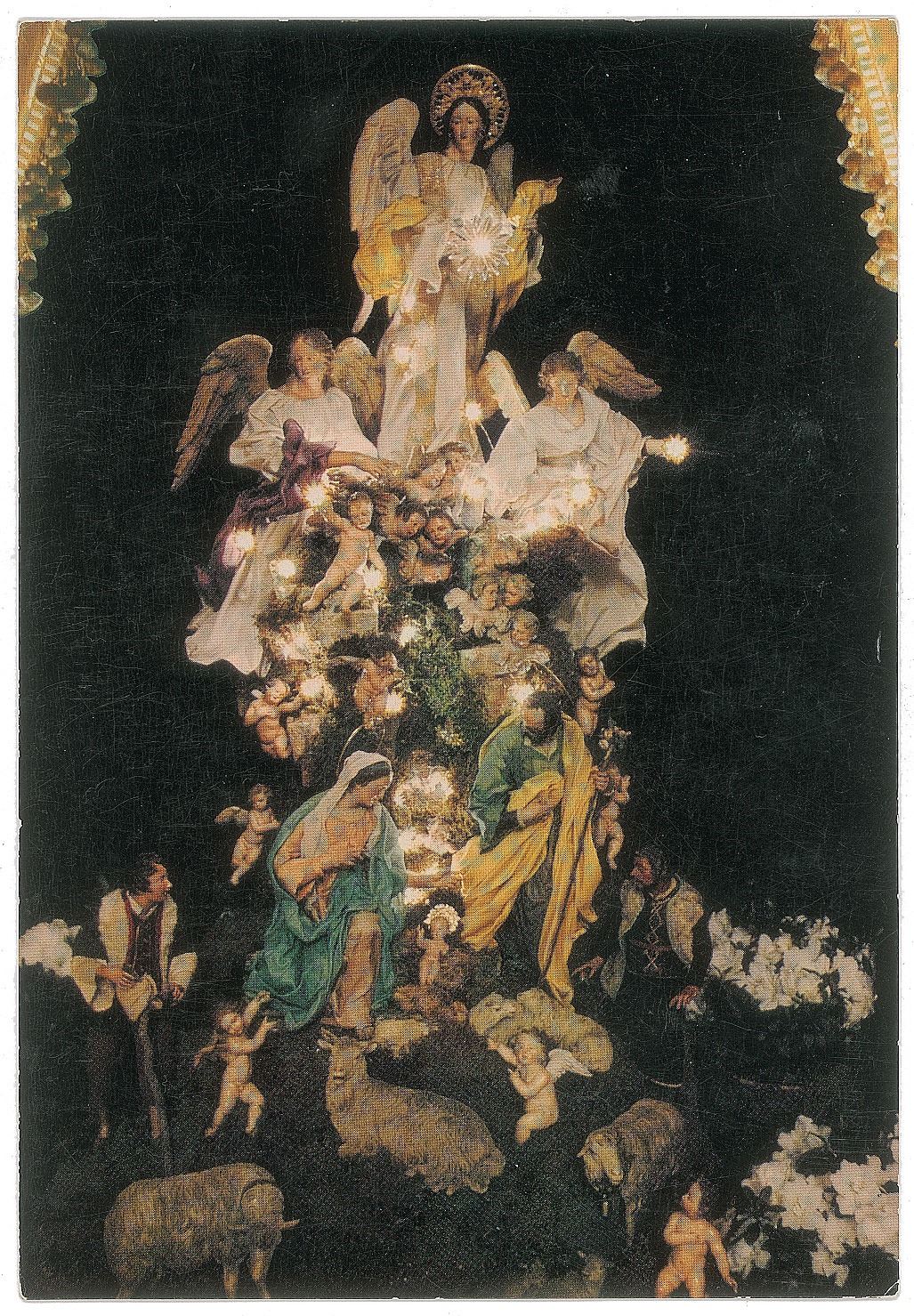 Exceedingly rare official Hallmark card issued during the 1963 holiday season, featuring an image of a nativity scene on the front, measuring 4.5 x 6.5 closed, with pre-printed facsimile signatures inside. The image on the front is identified as "Creche in East Room, The White House," and a gilt-embossed presidential seal and holiday greeting appear inside, reading: "With best wishes for a Happy New Year." In fine condition.
