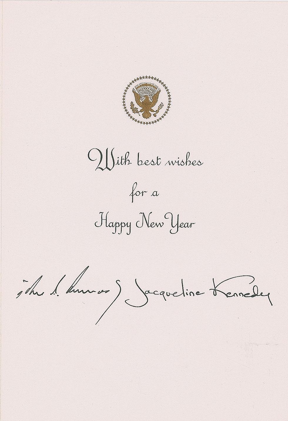 According to Mary Evans Seeley's book Season's Greetings from the White House, only 100 of this variant of the 1963 Christmas card were produced; omitting the Christmas greeting present in the other versions, this was designed to be given to Jewish friends and heads of state. A highly desirable example of a rare official White House Christmas card.