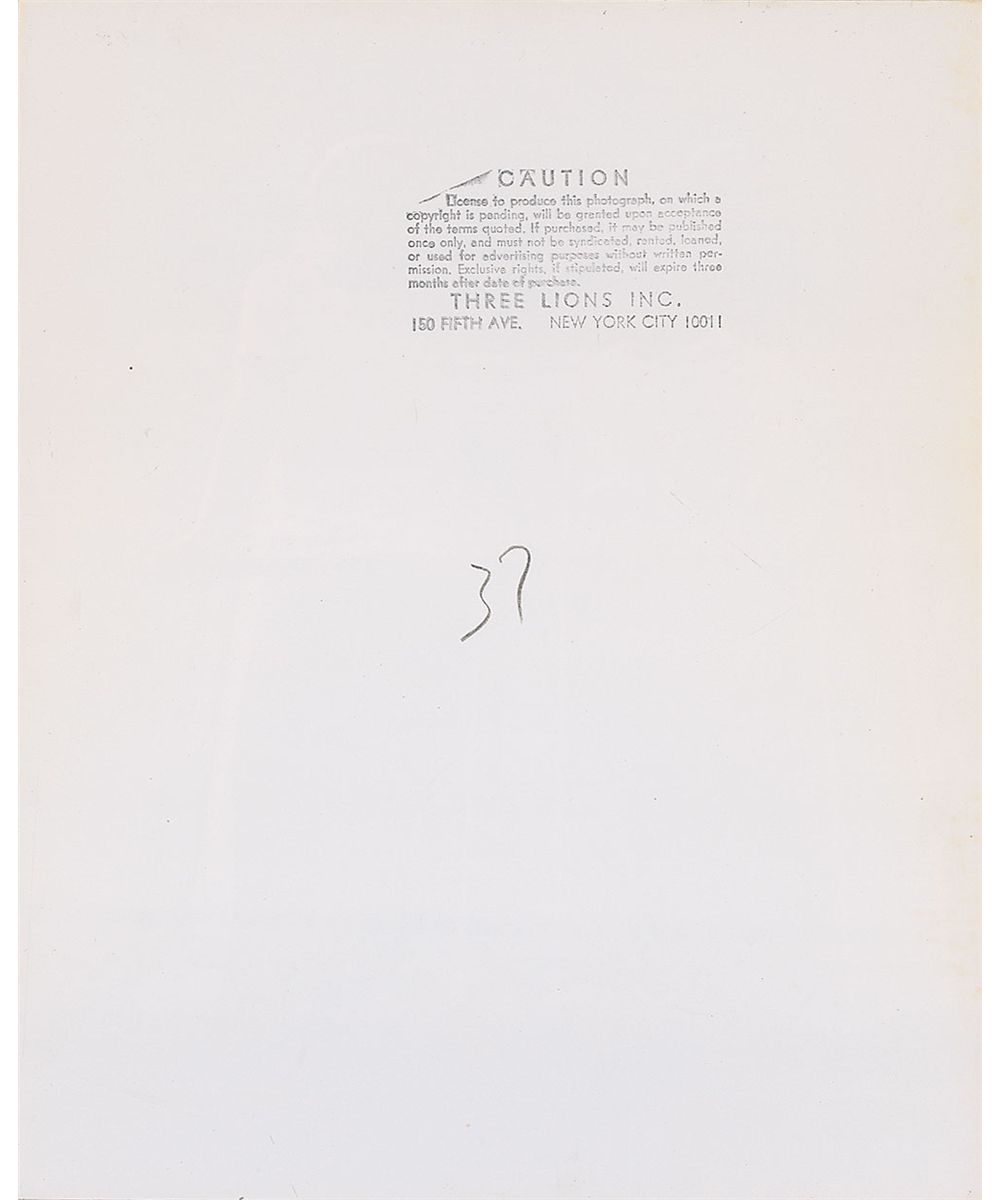During live Auctions, internet bids can be placed in real time through the following services: www.artfact.com and www.icollector.com. On some occasions beyond the control of RR Auction, the bid software or the Internet itself may not physically keep up with the pace of the auction. In order to help avoid disappointment, RR Auction recommends placing a realistic absentee bid now. Since Artfact and iCollector (hereinfafter referred to as “Third Party sites”) bids are not shown to RR Auction until RR Auction opens the lot on the floor, RR Auction treats those bids the same as floor or telephone bids. In most cases, however, the floor and/or telephone responds before the Third Party sites bid is presented, due to Live Internet bid software or Internet lag time, so for consistency it is RR Auction’ policy that floor bids and telephone bids are always considered first over Third Party sites bids with floor bids being considered before telephone bids. Also please note that all RR Auction lots purchased through the Third Party sites carry an additional Buyer’s Premium. RR Auction strongly urges the bidder to resolve any questions about these policies or their implementation PRIOR TO BIDDING.