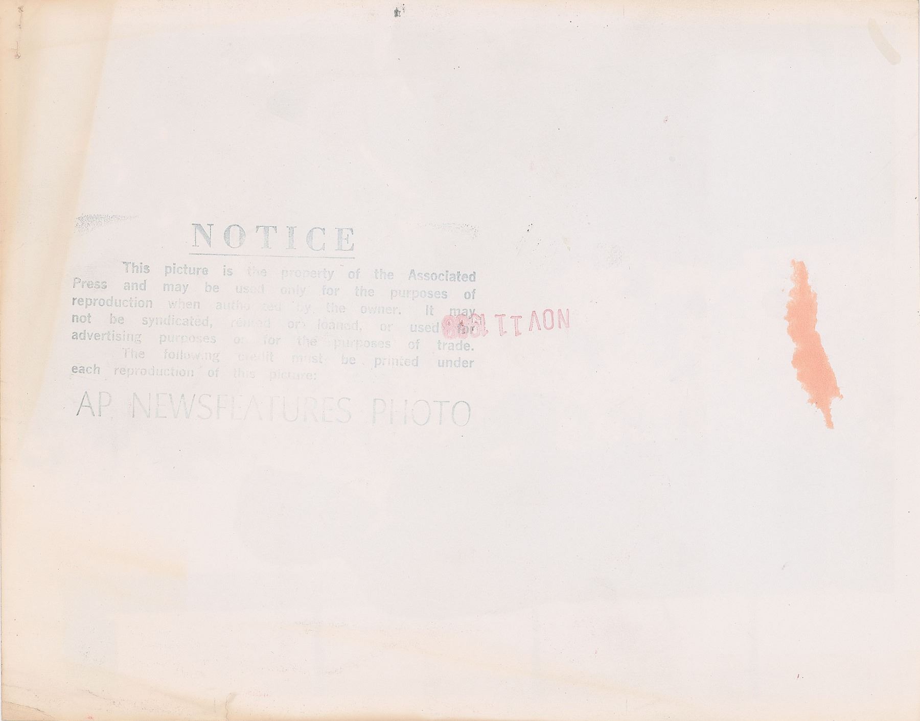 All lots sold by RR Auction are accompanied by an Auction Certificate ("AC”). On any lot presented with an AC issued by RR Auction, the certification is only as to its attribution to the person or entity described or to the lot's usage and only as explicitly stated therein (the "Certification of Authenticity”), to the exclusion of any other warranties, express or implied, including but not limited to those pursuant to the Uniform Commercial Code. The Certification of Authenticity inures only to the original Bidder (as shown in RR Auction's records). Bidder may not transfer, assign, or otherwise convey the Certification of Authenticity, and such purported transfer, assignment, or conveyance shall be null and void. The Certification of Authenticity is valid from date of the Auction in which Bidder was awarded the lot (the "Auction Date”) until five (5) years after the Auction Date, without exception.