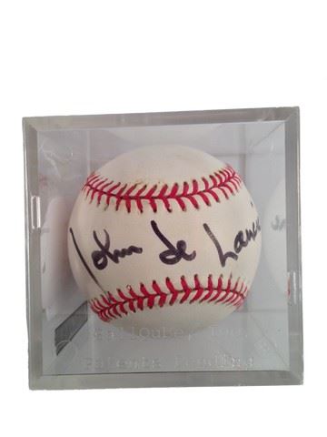 John de Lancie singed baseball in plastic display case (3"x3"). John de Lancie was raised in Philadelphia, Pennsylvania. He attended Kent State University where he won a scholarship to Juilliard. John's father was a professional oboist with the Philadelphia Symphony Orchestra. He is best known for his portrayal as Eugene Bradford on Days of Our Lives (1965) and the iconic, all-powerful Q on Star Trek: The Next Generation (1987).