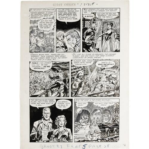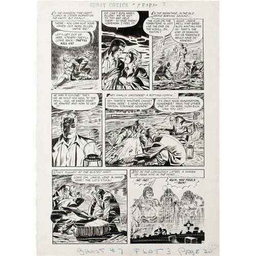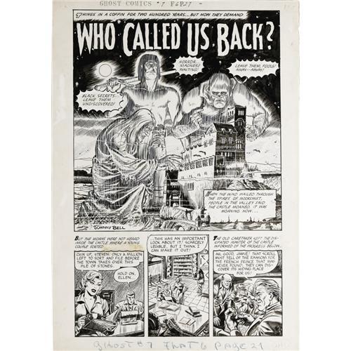 <B>Johnny Bell - Ghost #7, Complete 5-page Story "Who Called Us Back?" Original Art (Fiction House, 1953).</B></I> Greed has brought hunted criminal Payton Brooke to the old castle of Moorsmist, searching for a treasure. And it's greed that will dredge up an unspeakable evil that will send him to his doom in this macabre five-page story. Each page has an image area of 12" x 18". In Very Good condition. <I>From the John McLaughlin Collection</B></I><BR><BR><b>Shipping:</b> Large Flat (<a target="_blank" href="http://www.heritageauctions.com/common/shipping.php">view shipping information</a>)