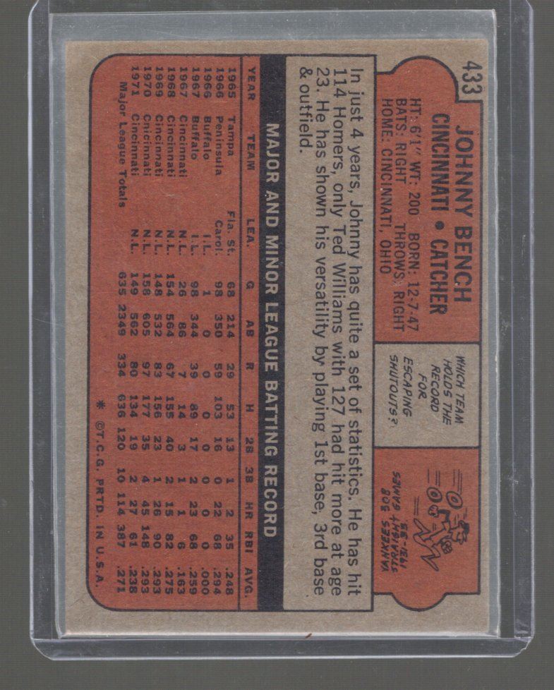Johnny Bench 1972 Topps #433