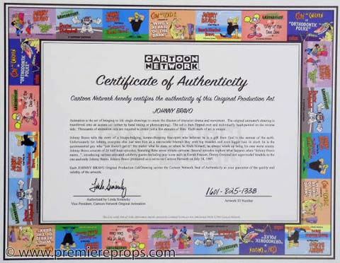 JOHNNY BRAVO: Johnny Bravo Busting Doors Original Animation Cel (13.25" x 11" / original production cel featuring Johnny Bravo busting through a pair of double doors / includes certificate of authenticity from "Cartoon Network" / cel is not matted) (#1338)